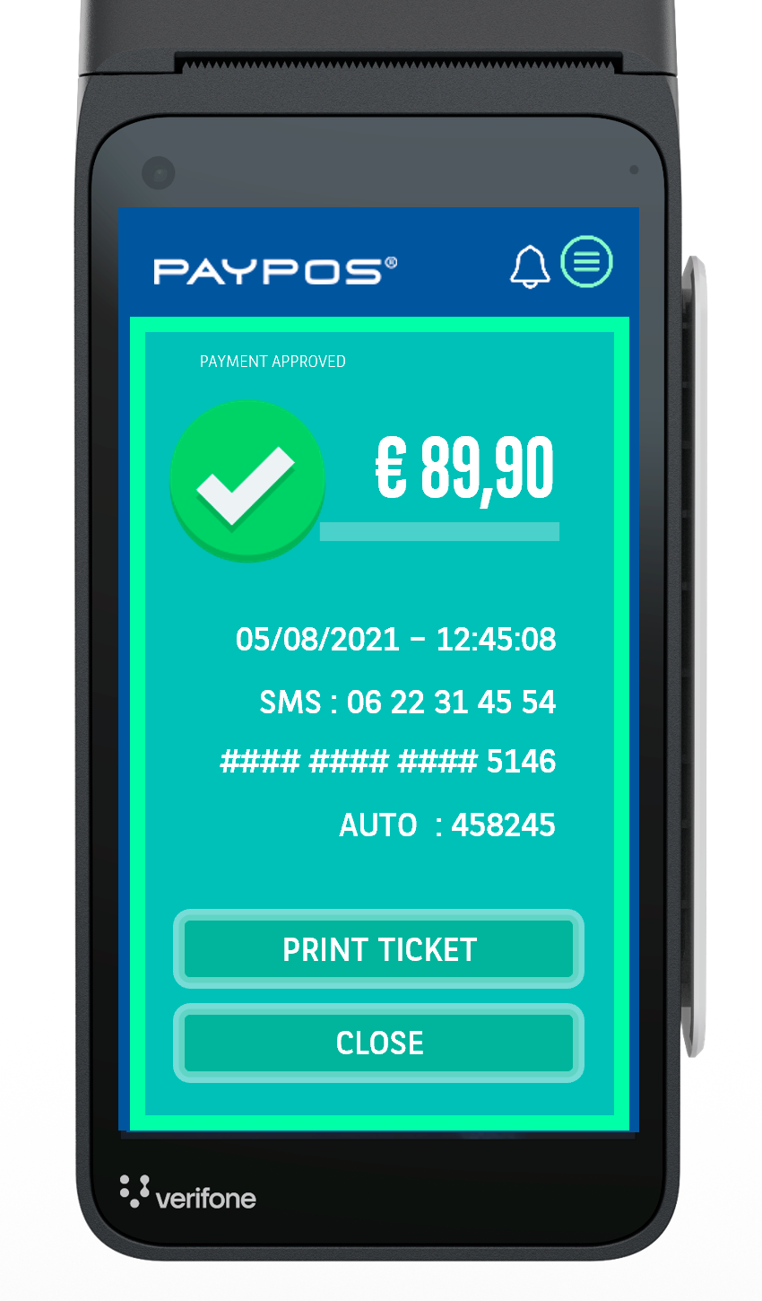 PayPOS® confirme en temps réel tous les paiements au marchand et au client. Pendant ce temps, vous pouvez initier d'autres transactions et pourrez imprimer les tickets des transactions confirmées et/ou les envoyer à distance